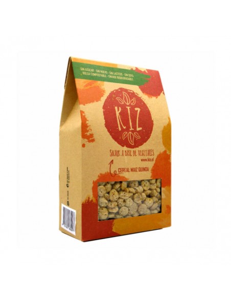 Ingredientes: Maíz desgerminado, harina de quinoa, carbonato